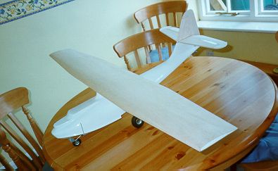 it has a GRP plastic fuselage and balsa veneered foam wings.